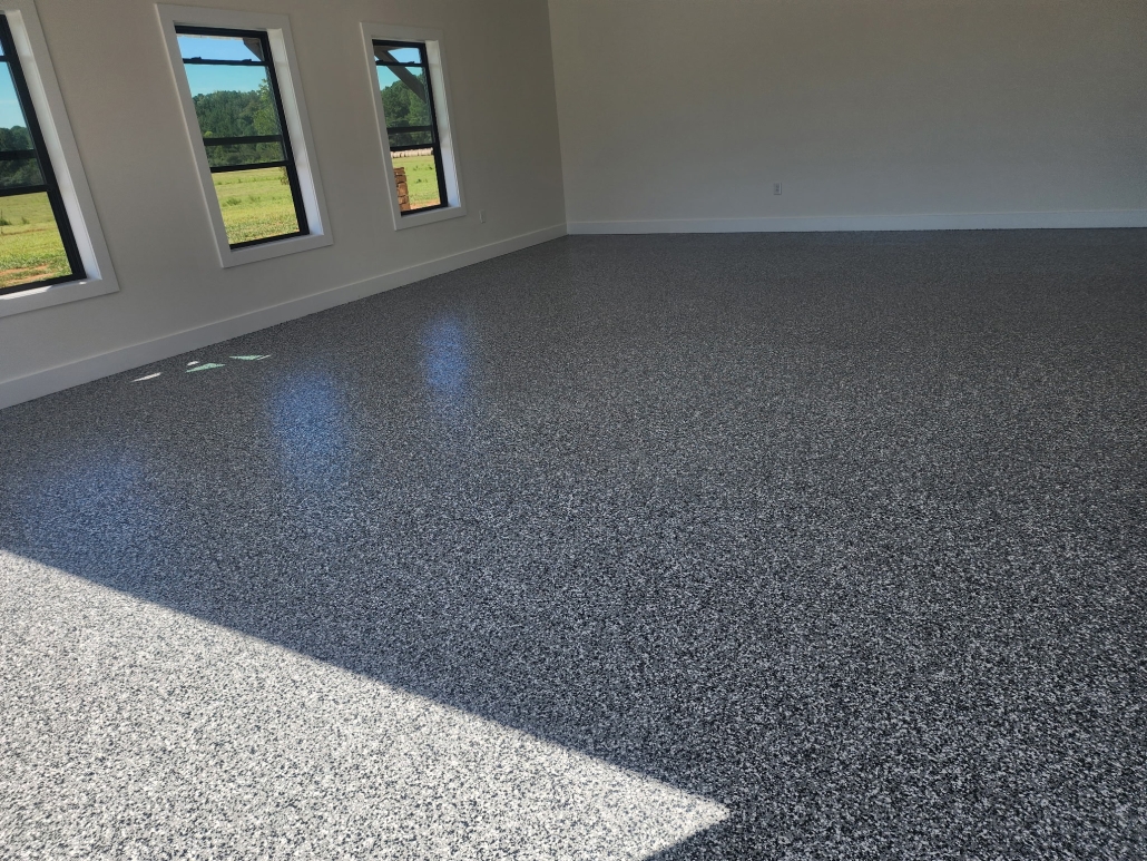 Flake and mica chips create some of the most beautiful color combinations. The 1/4 inch flakes provide the most texture while the 1/16 inch flakes are smoother. Metallic mica offer a richer, upscale look to garage flooring. Regardless of the texture you choose for your garage floor coating, we’ll be able to create the perfect color combination for you.